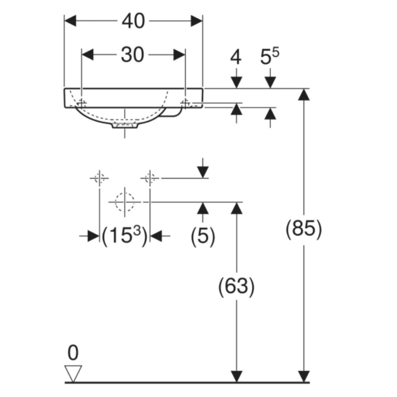 500.635.01.2 Acanto раковина 40 см, отвір праворуч, без перелива, білий (1 сорт)