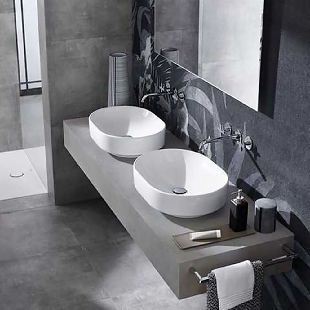 Немає в наявності500.774.01.2 VariForm Умивальник еліптичний, вставний на столешню, 55х40см, без отвору, без перелива, білий (1 сорт)