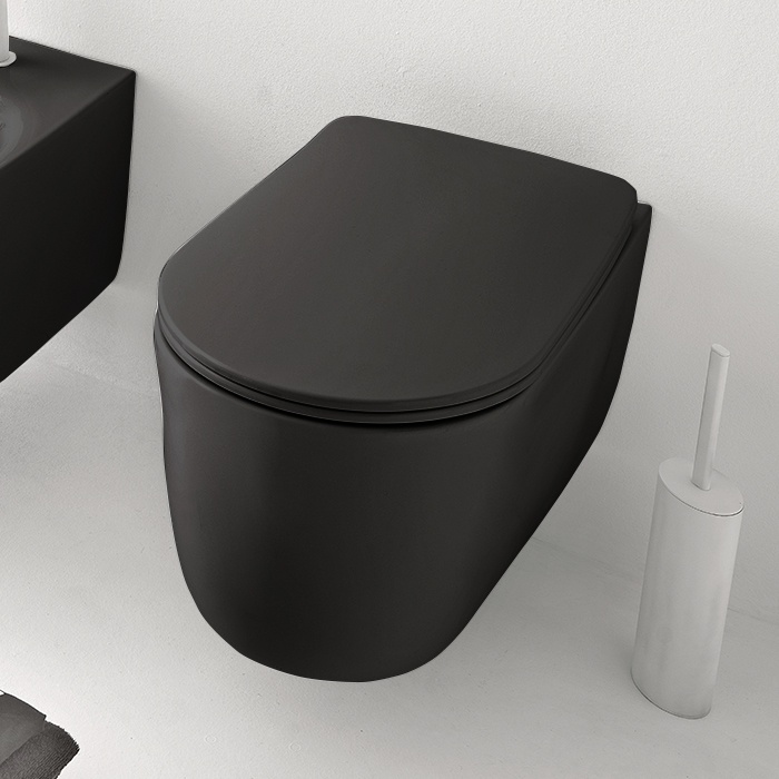 5314 31 Nolita Унітаз безобідковий підвісний 52 в комплекті з кріпленням WB9N та шумоізоляційною пластиною, чорний матовий (1 сорт)
