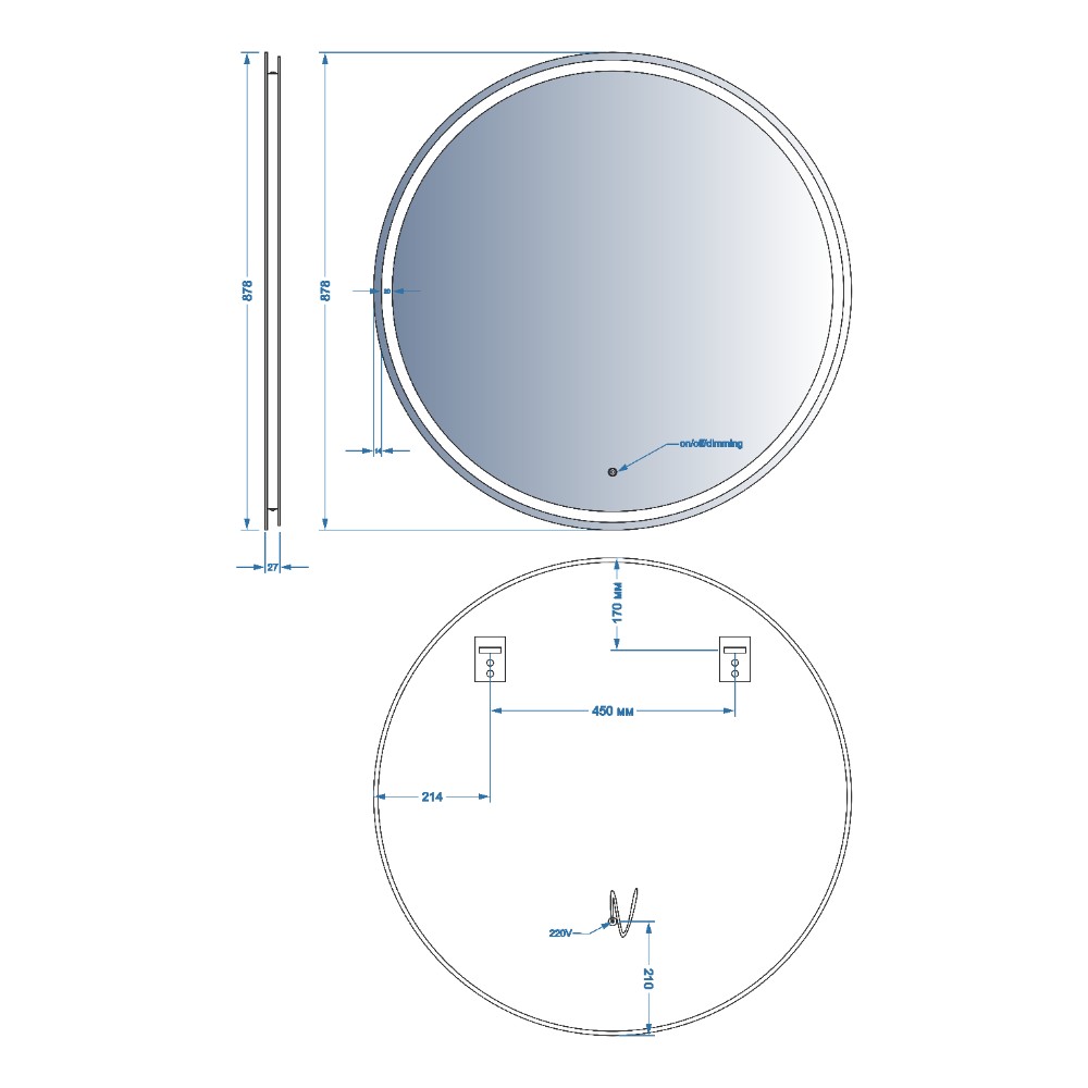 5501090 AllRound Кругле дзеркало d90см з LED підсвіткою та тачсенсором (1 сорт)
