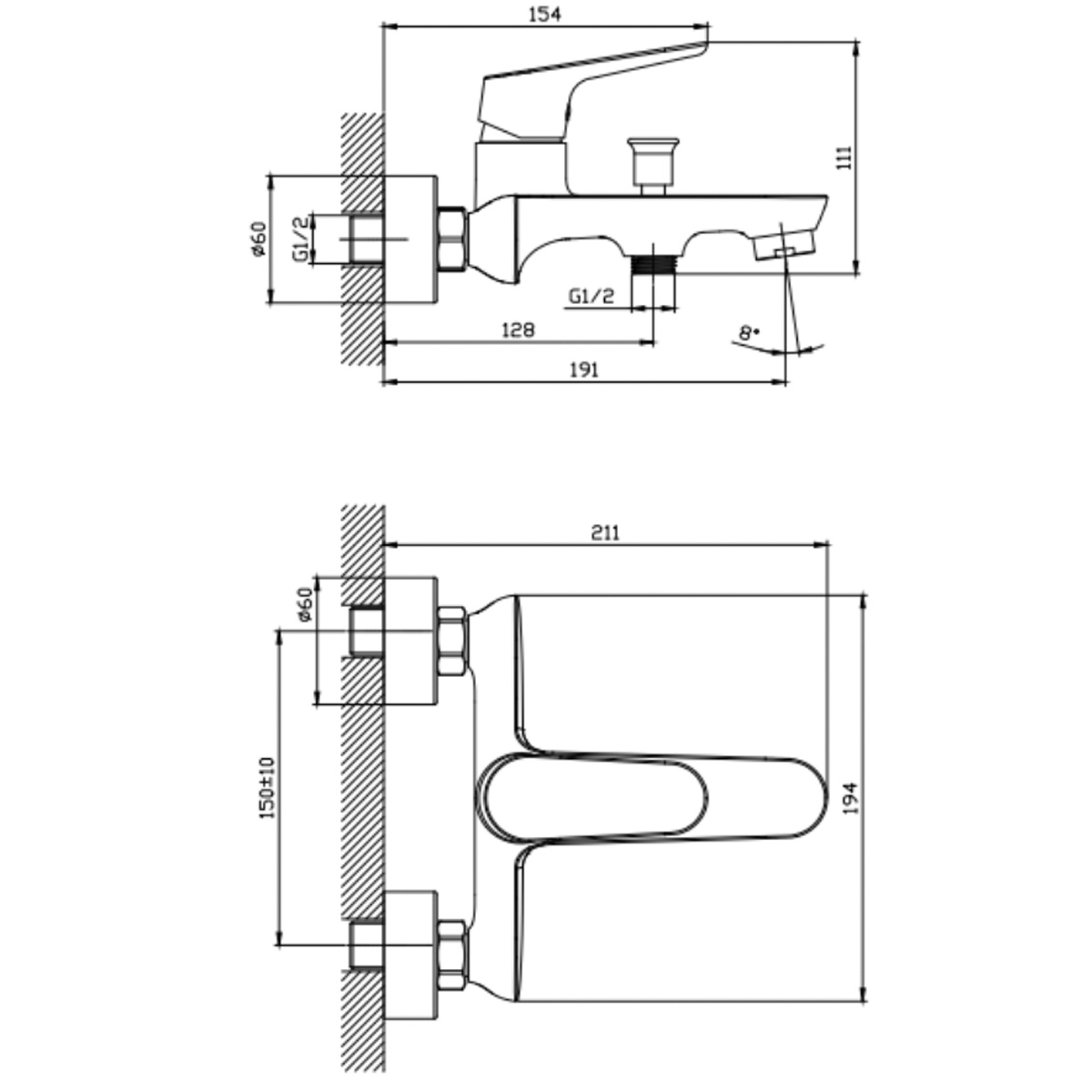 5521040B Life Змішувач д/ванни, чорний мат (1 сорт)