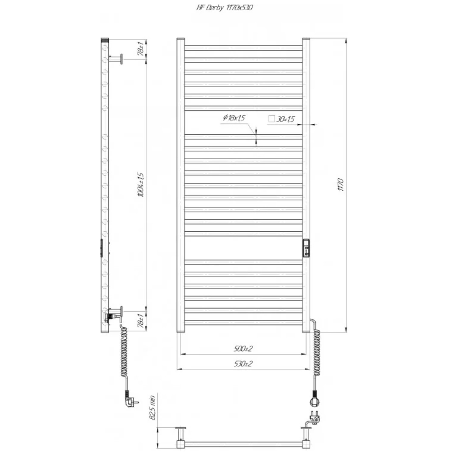 6.1.0404.06.BM Рушникосушка ел. HF Derby 1170х530 чорний мат, в комплекті з прих.підкл (1 сорт)