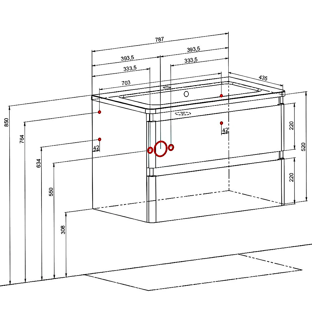 7006 Тумба Акцент консольна з раковиною умивальником Альфа 80 см, сірий мармур (1 сорт)