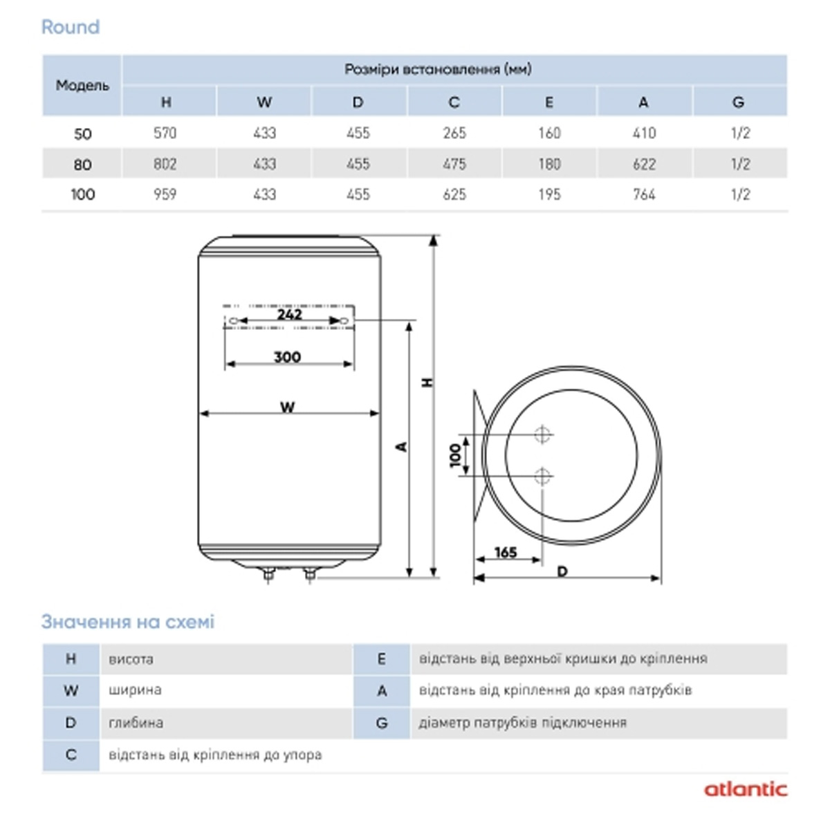 961293 Водонагрівач побутовий електричний ROUND VMR 100 (1500W) (1 сорт)