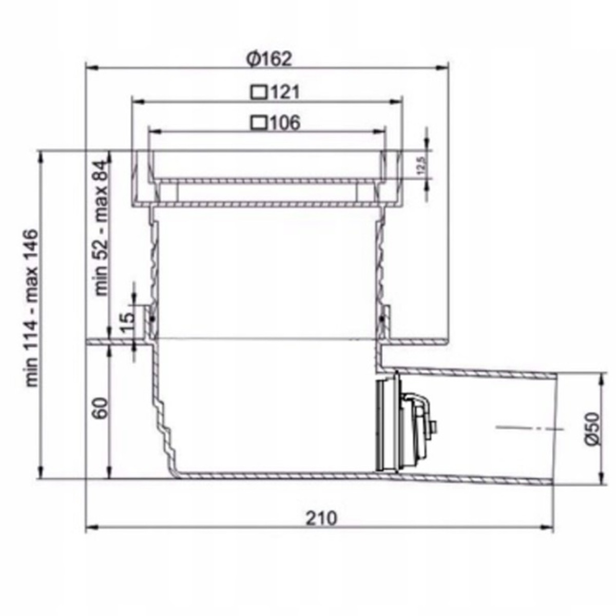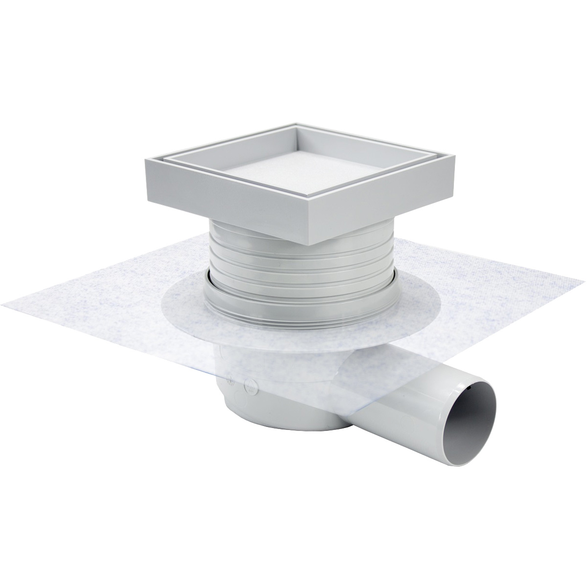 BA0102D Basic Душовий трап 10х10 з накладкою під плитку, сухим затвором та з горизонтальним виводом (1 сорт)