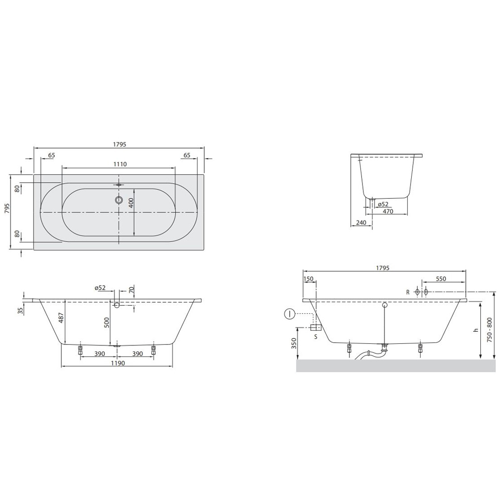 BA180CAS2V-01 O.NOVO/CASSANDRA Ванна 180х80см, білий (1 сорт)