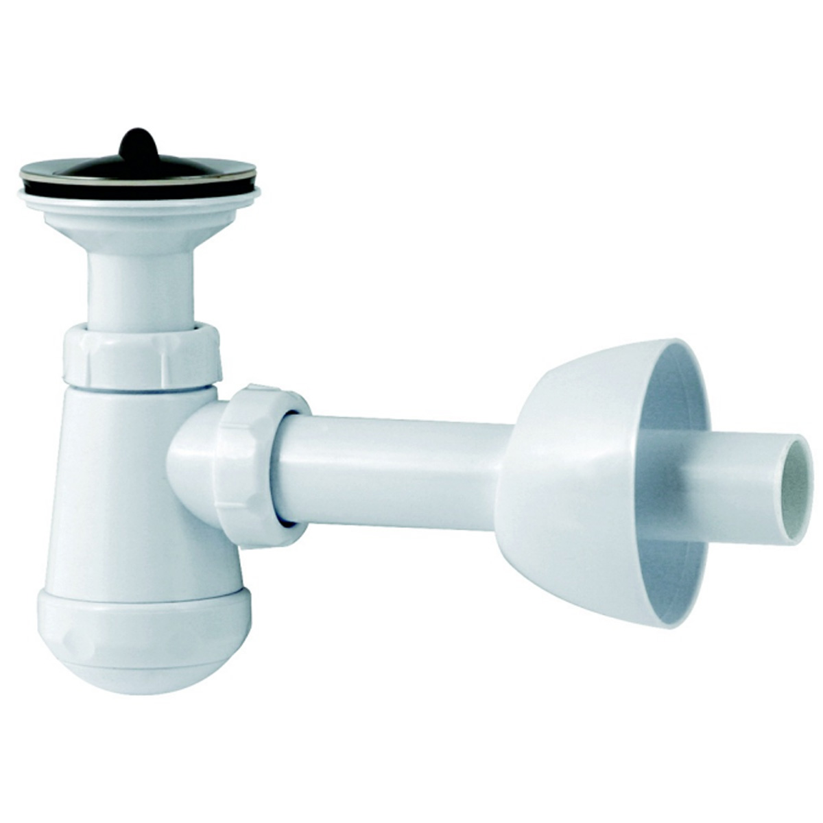 Комплектація: пробка, сифон, з відвідної трубою, вбудований ущільнювач, зливний патрубок з фланцем, накладка декоративна випускного патрубка, з’єднувальні елементи