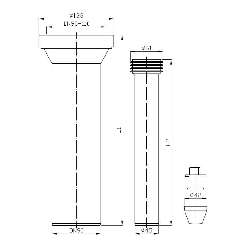 DV93520 Набір патрубків для встановлення, подовжений, 350мм (1 сорт)