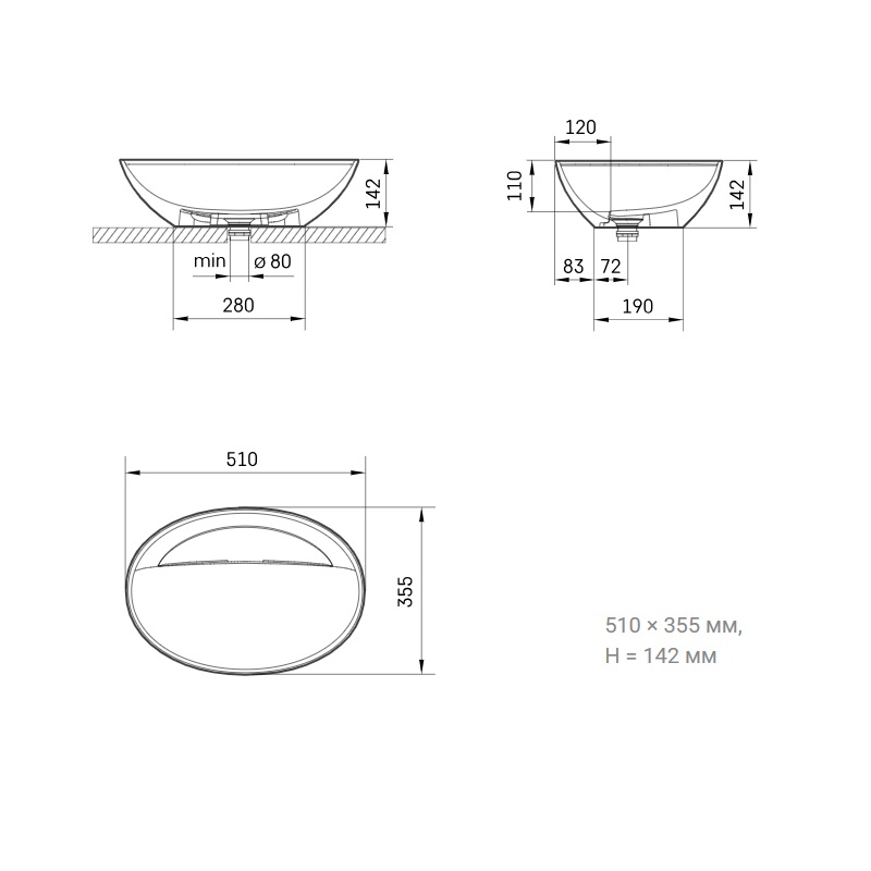 IPERLS/00 Perla Раковина 51см з литого (штучного) каменю Silkstone, білий мат (1 сорт)