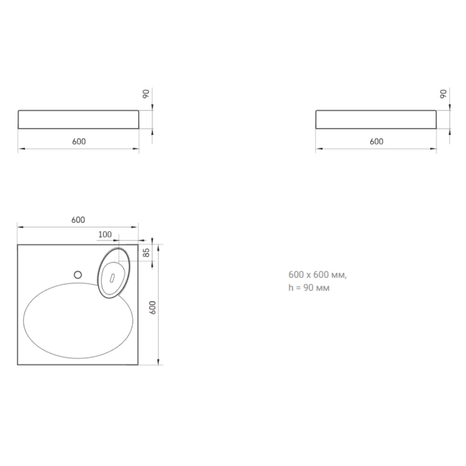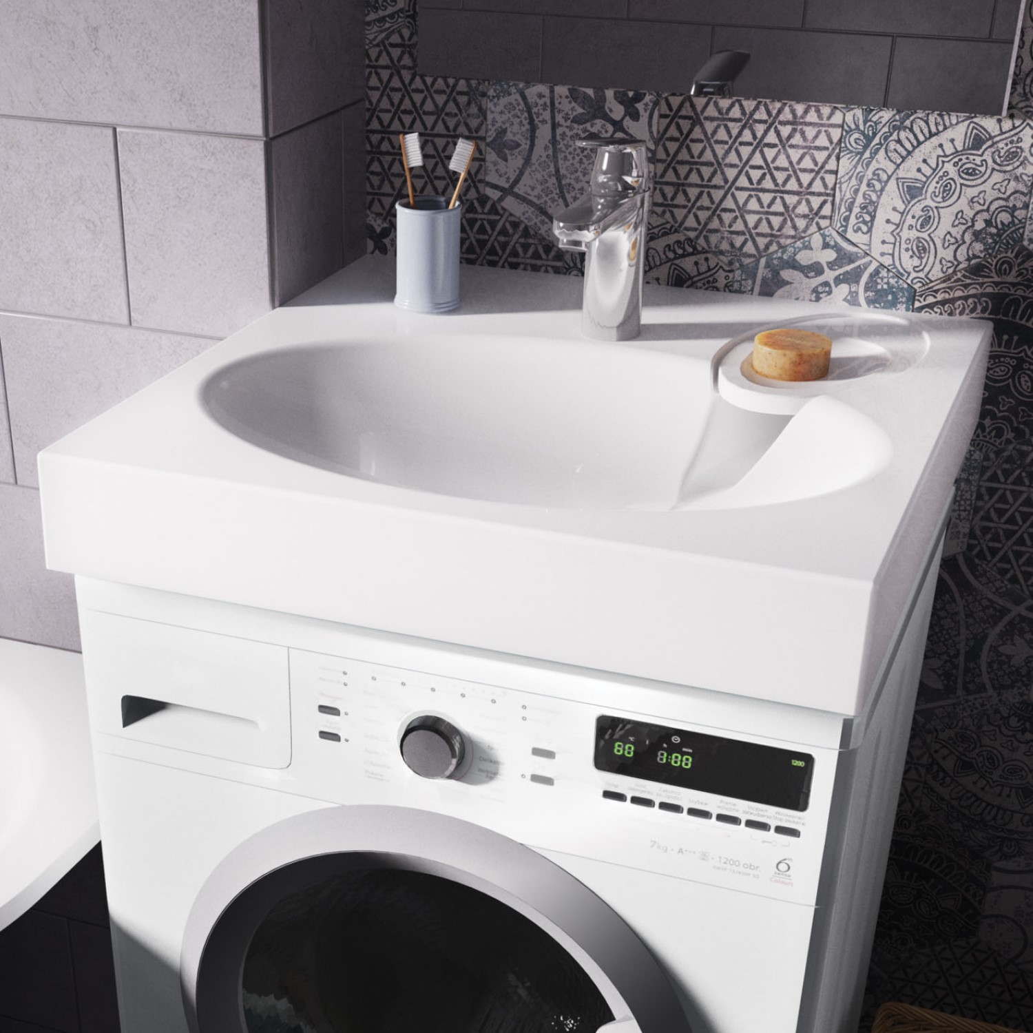 KICLASIF/00 Claro Раковина на пральну машину, з литого (штучного) каменю 60х60 з мильницею + сифон та кронштейни 2шт, біла (1 сорт)
