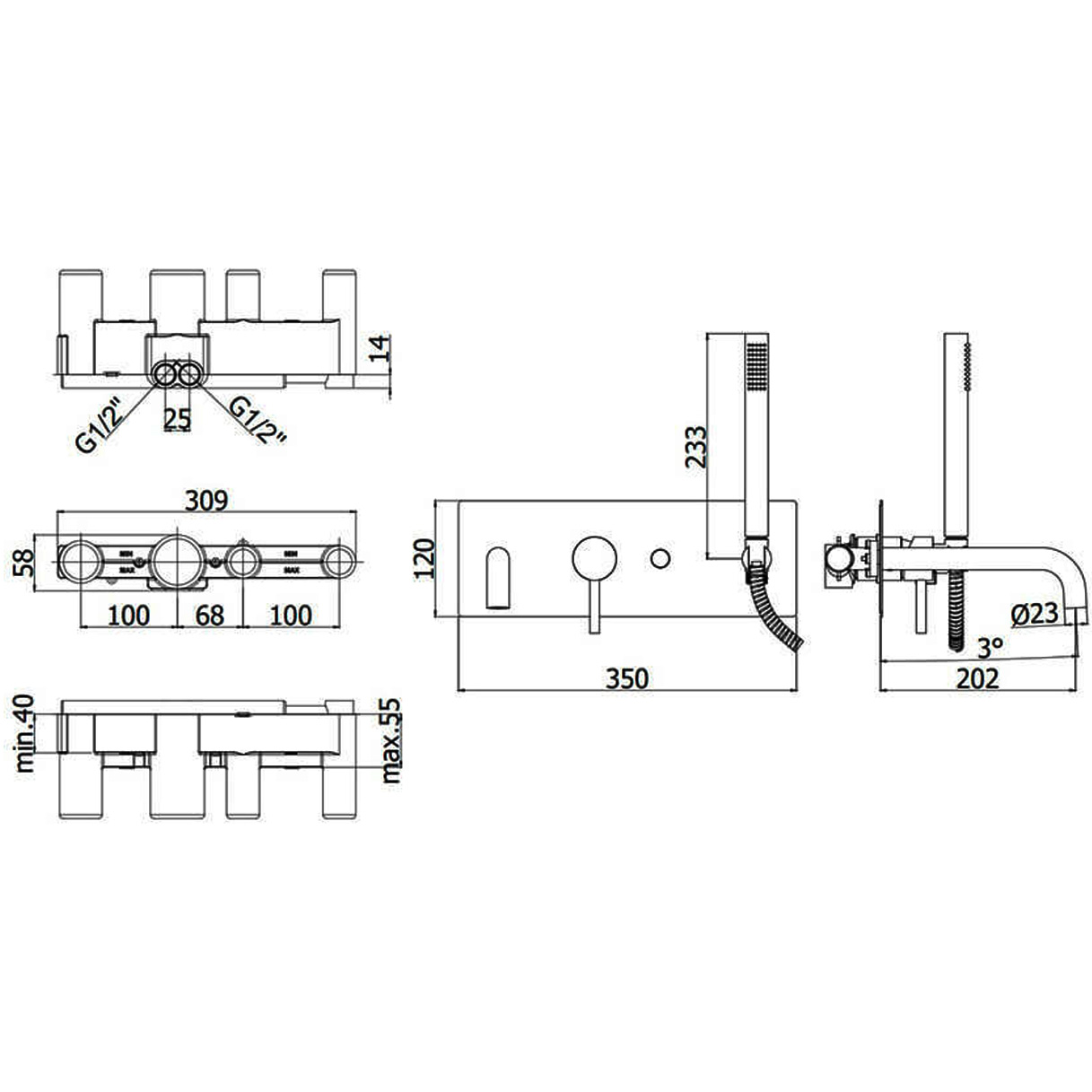 | Комплектація | вилив, душовий шланг, зовнішня частина змішувача, прихована частина, ручний душ, тримач для душу |
