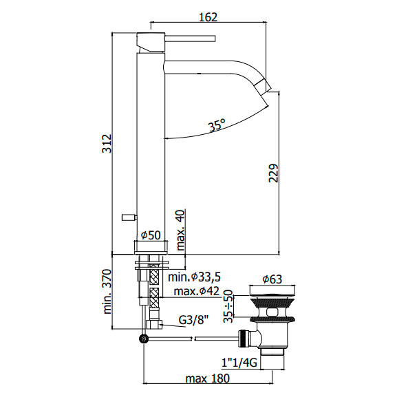 | Комплектація | донний клапан, змішувач, шланги для підведення води |