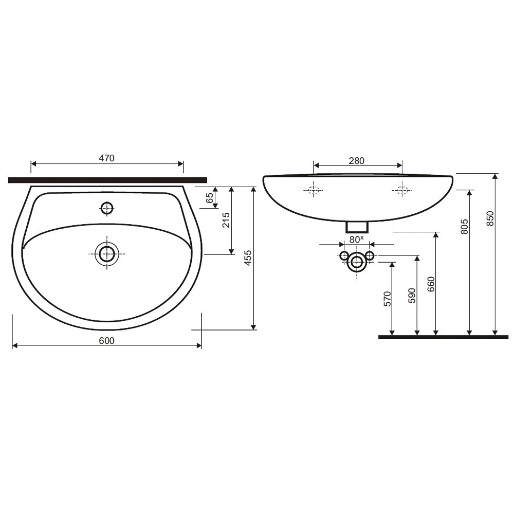 M1116000U IDOL Раковина 60см, з 1 отв.під зміш., з переливом, білий глянець (1 сорт)