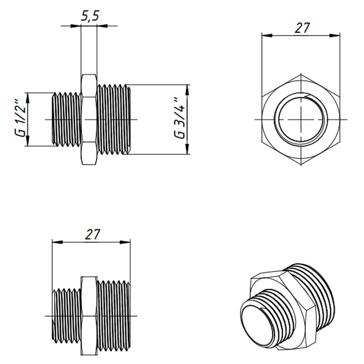 N10C Хром FADO Ніпель редукційний 1/2х3/4 (1 сорт)