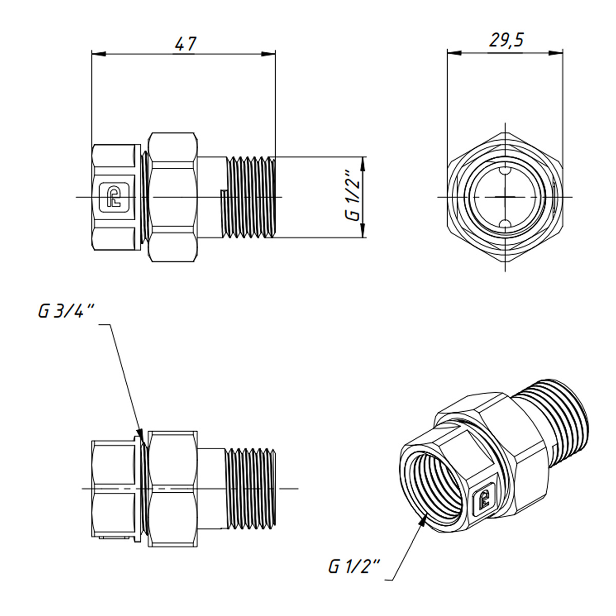 SC01 Згін з накидною гайкою ХРОМ FADO 15 1/2 прямий (1 сорт)