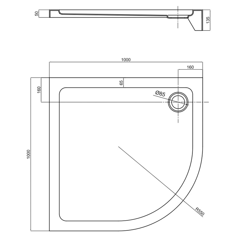 STQ2010 FRAME Піддон чверть кола 100*100 (1 сорт)