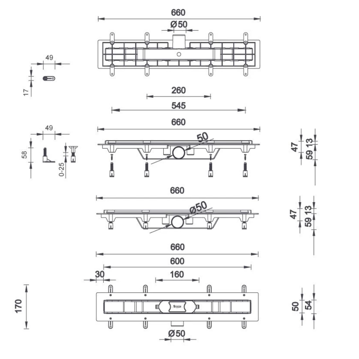 STY-SI-60 Душовий канал з полірованою решіткою 600 мм SINUS з сухим сифоном (1 сорт)