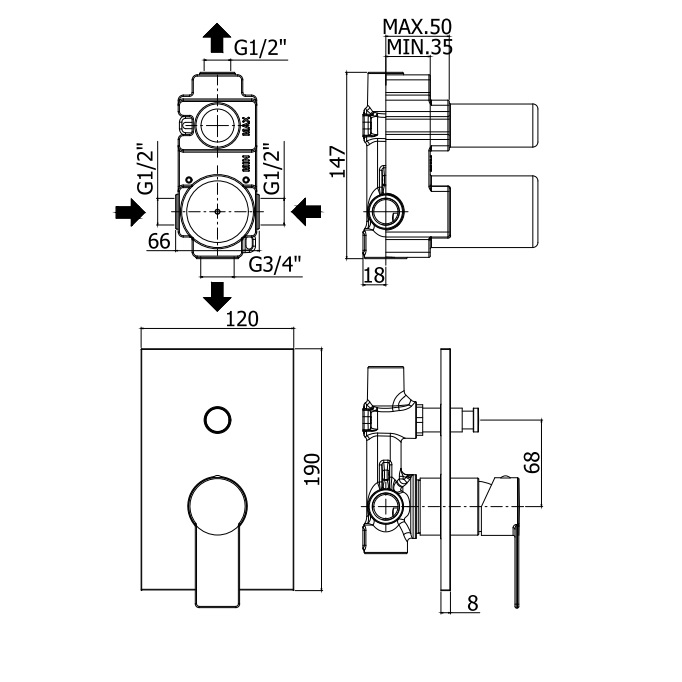 | Комплектація | зовнішня частина змішувача, прихована частина |