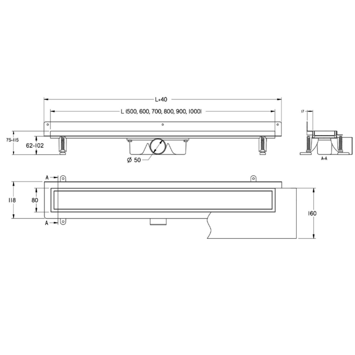 UN70110 Universal Душовий канал 70 пристінний з нержавіючої сталі та низьким сифоном і накладкою, з горизонтальним виводом, хром (1 сорт)