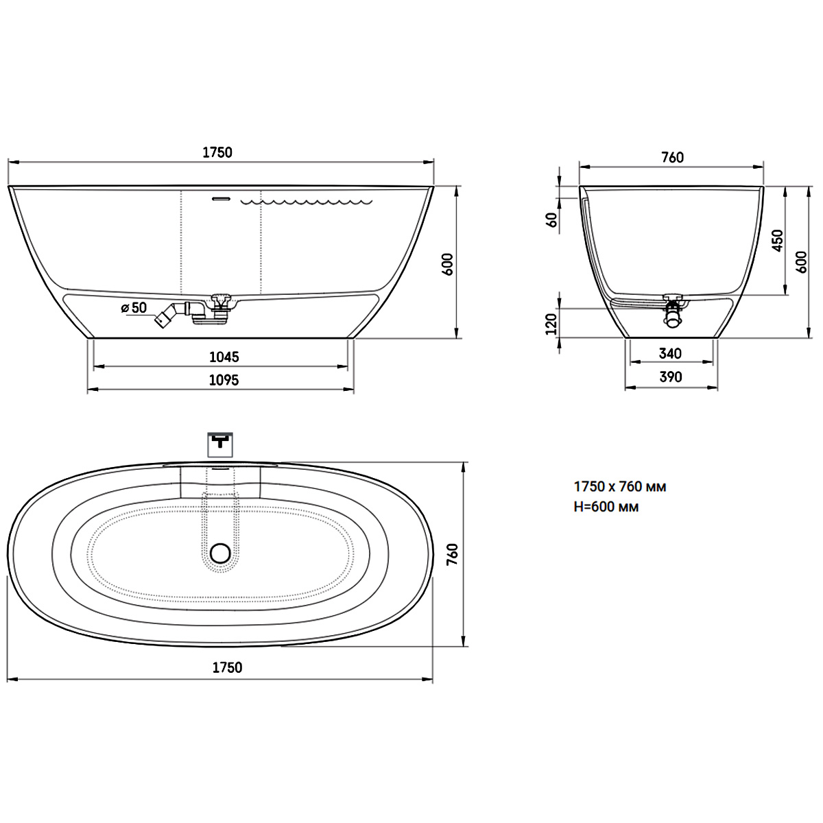 Комплектація: ванна, сифон