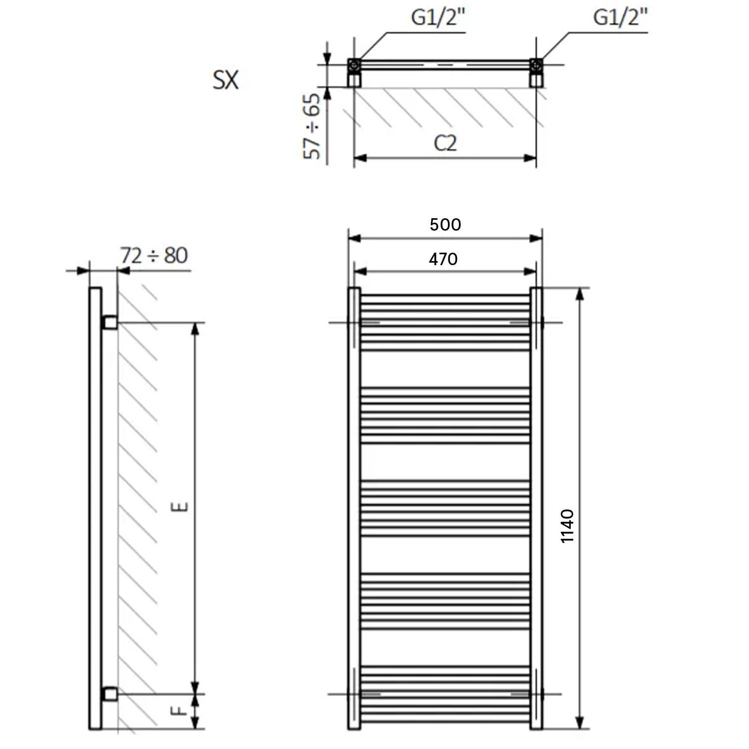 WGFIN114050K9M5SX Рушникосушка Fiona 1140*500, колір чорний мат (RAL 9005) (1 сорт)