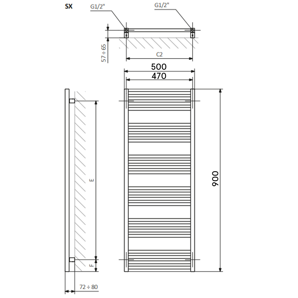 WWFIE090050K9M5E1P Рушникосушка електрична Terma Fiona One 900*500, колір чорний мат (RAL 9005), приховане підключення зліва (1 сорт)